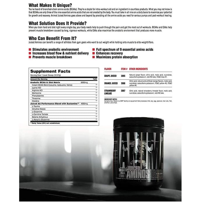Universal Nutrition Juiced Aminos Orange is a rapid-dissolving BCAA supplement that delivers both anabolic and anti-catabolic effects for optimal muscle support. The anabolic properties of BCAAs aid in protein synthesis, while also contributing to the regulation of stress and testosterone levels. This formula is designed to improve strength, increase stamina, enhance muscle recovery, boost blood flow, and reduce fatigue, making it a comprehensive solution for your workout needs.