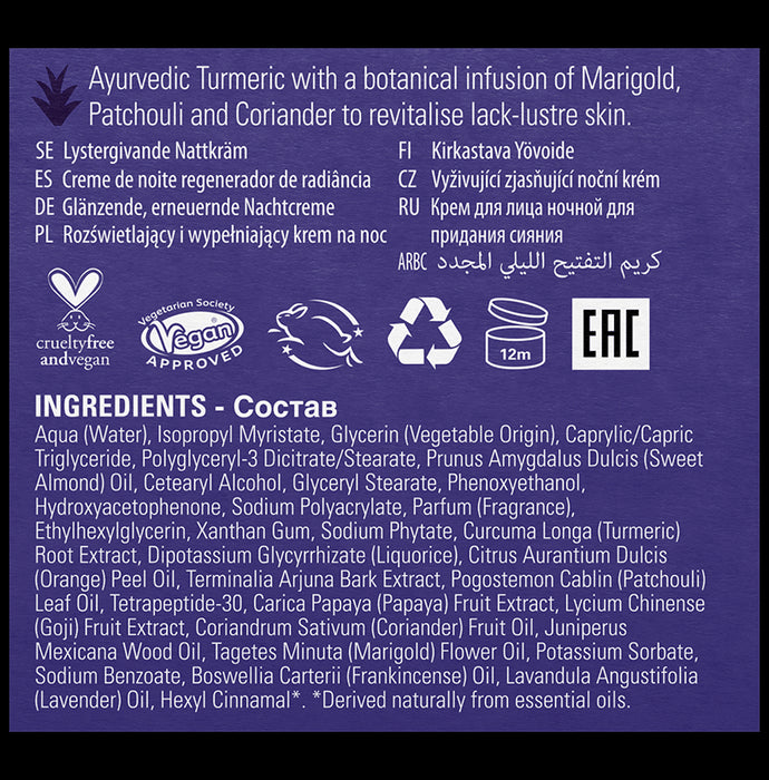 Urban Veda Purifying Protecting Night Cream Brimming with phytonutrients and antioxidants, the bioactive Radiance Replenishing Night Cream is enriched with an anti-inflammatory peptide sequence to impart a luminosity to skin, helping to balance tone and correct signs of hyperpigmentation. Deeply moisturising, and with anti-inflammatory Turmeric, Liquorice extract and Ayurvedic Arjuna to boost collagen production and skin elasticity, this night cream cares for dry and lacklustre skin from all angles, reducing the appearance of fine lines and leaving you to wake with plump, youthful, hydrated skin.