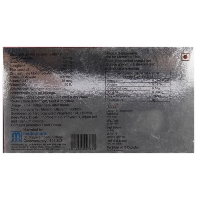 Composition : Linum usitatissimum,Ubidecarenone,Resveratrol,L-Arginine,Flax seed oil,Vitamins