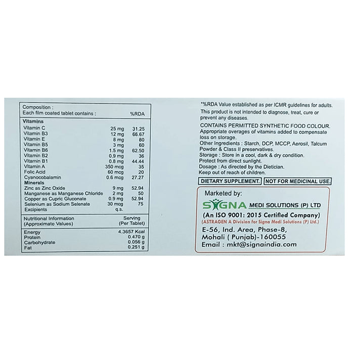V 4 All Tablet is a comprehensive dietary supplement that combines essential vitamins, minerals, antioxidants, and cyanocobalamin (Vitamin B12).