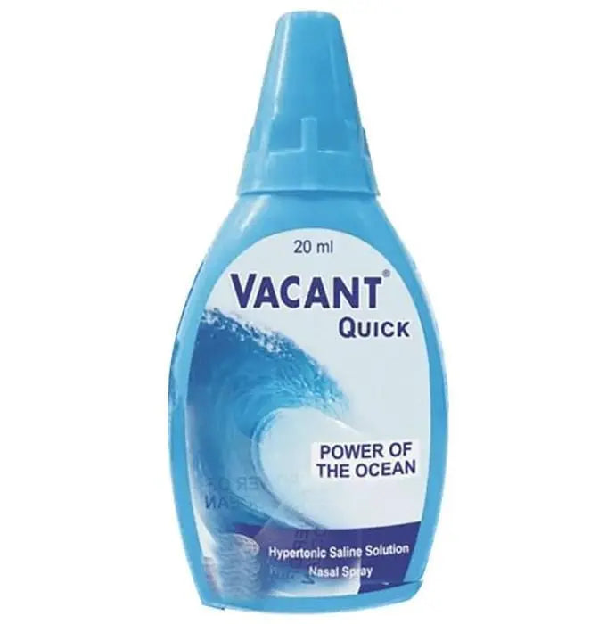 Vacant Quick Spray is a nasal saline moisturiser that may help to offer natural, non-medicated soothing relief for dry, irritated nasal passages due to allergies, colds, and sinusitis.