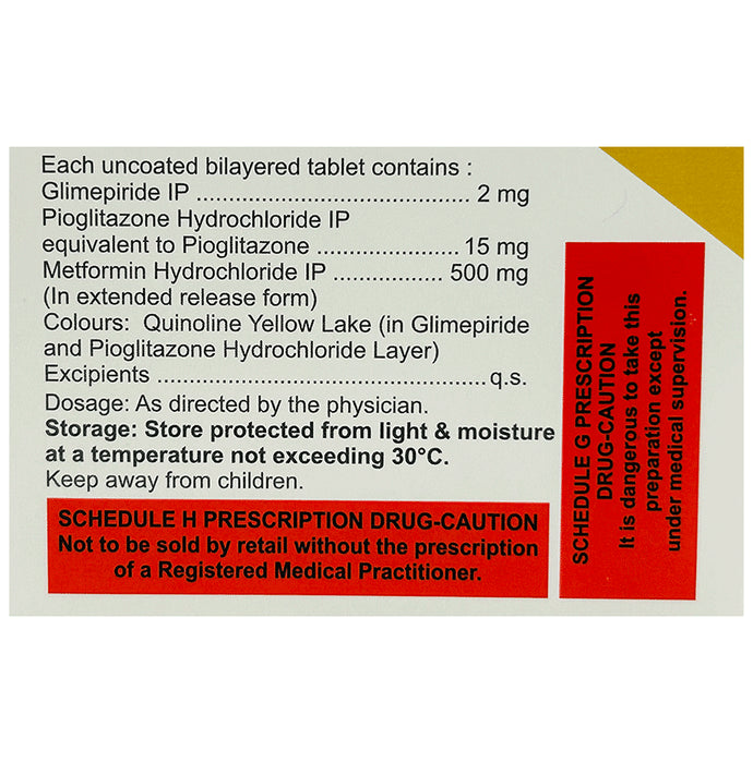Composition : Glimepiride (2mg) + Metformin (500mg) + Pioglitazone (15mg)