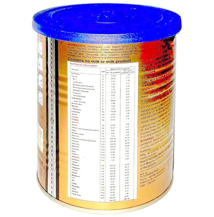 Composition : Maltodextrin, Soya Protein Isolate, Edible Vegetable Oils (Coconut Oil And Groundnut Oil), Medium Chain Triglycerides, Minerals, Emulsifier, Vitamins, L-Methionine, Taurine, Carnitine And Antioxidant