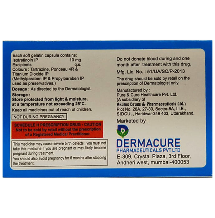 Zitlite 10 Capsule belongs to a group of medicines called retinoids (vitamin A derivative). It is used to treat severe acne that has not responded to other treatments. Zitlite 10 Capsule should be used in the dose and duration as advised by your doctor. Take it with food, preferably at the same time each day to avoid a missed dose. It may take several weeks for your symptoms to improve but keep taking the medicine regularly to get the most benefit. If you notice no improvement after a few weeks, see your doctor again.The most common side effects include dry skin, rash, and increased liver enzymes. They are not usually serious and often disappear after getting used to the medicine but if they bother you or do not go away, tell your doctor.Zitlite 10 Capsule may make you more sensitive to sunlight so you should limit your exposure to the sun. It may also make your skin more fragile. Avoid any waxing (hair removal), or laser treatments during treatment. Additionally, it may cause dryness of the mouth, lips, and eyes so drink plenty of water and use a moisturizer. This medicine may lead to birth defects, do consult your doctor if you are pregnant or planning pregnancy.
