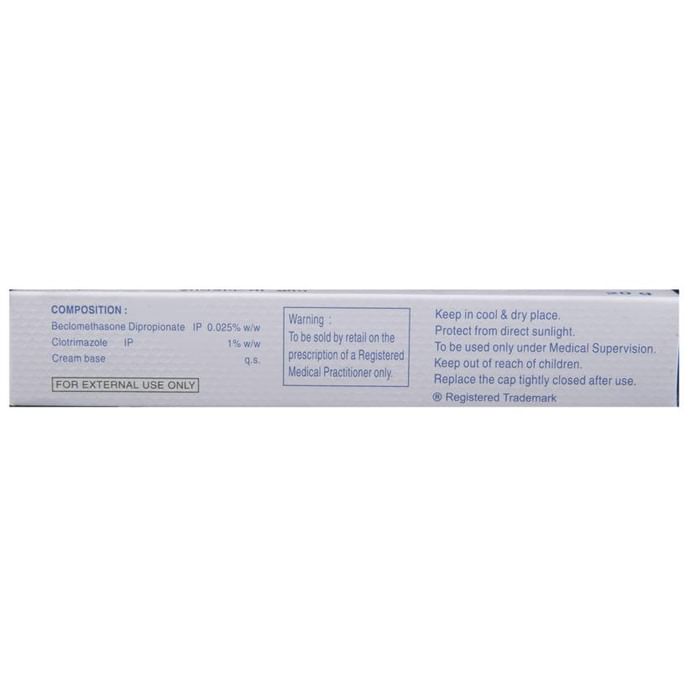 Composition : Beclometasone (0.025% w/w) + Clotrimazole (1% w/w)