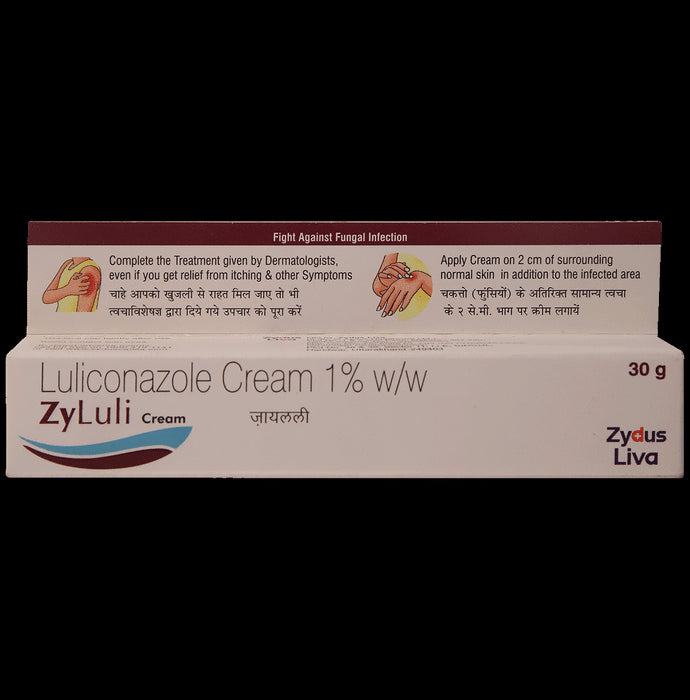 Zyluli 1% Cream is an antifungal medication that treats skin infections. It kills the infection-causing fungi by destroying their cell membrane. This relieves discomfort, itching, and irritation on the skin.